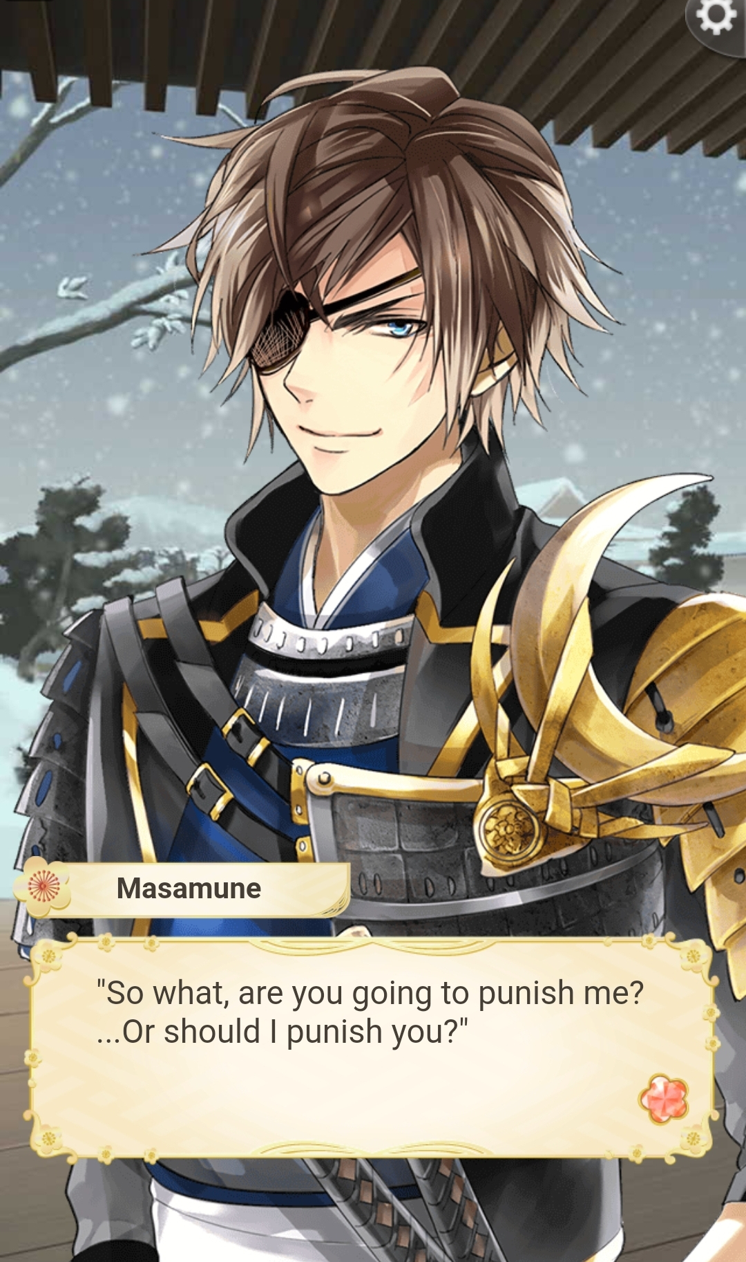 Date Masamune quite literally sweeps MC off her feet in the prologue and continues in exactly the same fashion throughout his route. Adventurous and spontaneous, there’s never a dull moment with the ‘One-eyed Dragon’ (yes, he has an eyepatch and yes, it makes everything he says and does much cooler). While other warlords may have a complicated relationship with battle, death, and killing, Masamune seems to revel in it. Even his colleagues think he’s dangerous, but will you take shelter from the storm? Or will you find yourself swept up in hurricane Masamune and his wild charms?