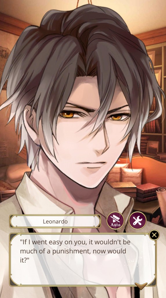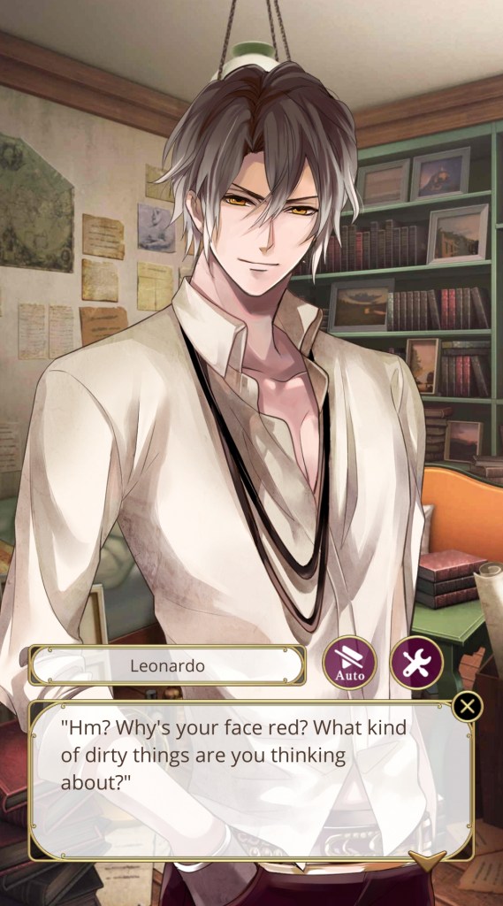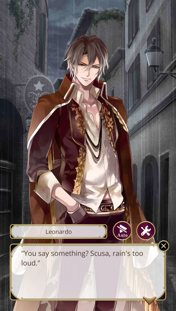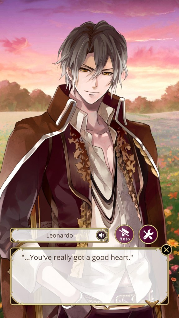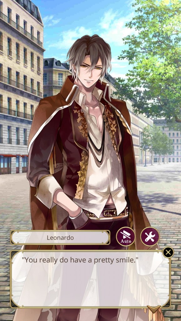 I didn’t choose Leonardo’s route for a bittersweet, tragic romance filled with philosophical quandaries around mortality and the meaning of life, but that’s what his story ultimately turned into. That being said, on my second playthrough I didn’t feel as frustrated by Leonardo’s actions, so it may have been more to do with my expectations; that is, not expecting so much angst and drama from a character I thought was going to be solely fun and exciting.