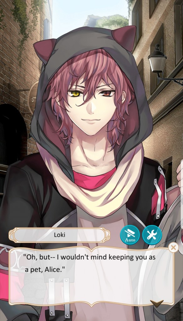 I didn’t initially enjoy Ikémen Revolution as much as Ikémen Sengoku or Vampire, as the routes I played had very little spicy content and seemed generally more innocent and targeted towards a younger audience. However, the tone seems to have shifted more towards what I’d expect from the other Ikémen games, and even side stories with characters whose routes I had read before have ramped up the steamy content. I definitely enjoy the game more than I used to, but even with the more innocent tone, I still enjoyed the first few routes I chose, and Loki continues to be my favourite love interest in the game.