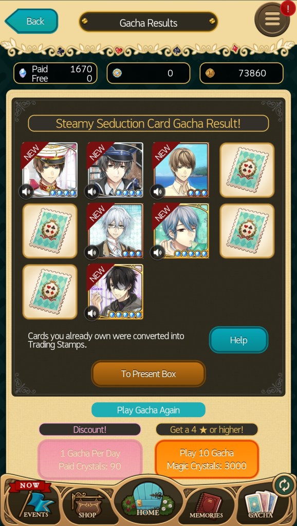 Personally, I really like the premise. It’s the classic “you’re stuck in another world and forced to rely on the handsome man of your choice until you can return home” concept that we have seen in other Ikémen Series games, only this time it’s not samurai or vampires, but magic, knights, and princes. When I first started playing Ikémen Revolution, it was a lot more innocent and wholesome than Ikémen Sengoku or Vampire, but recently there have been much spicier stories that have brought the overall tone of the game more in line with the rest of the series.