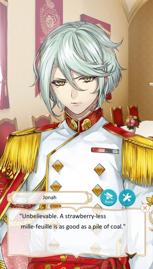 Mousse Atlas (Diplomat): Mousse is the former Ace of Hearts, relinquishing his position in the Red Army to work for the government as a diplomat. He’s perpetually sleepy and can usually be found napping in odd places. Mousse falls in love with you at first site and becomes incredibly persistent, but not pushy, greeting you with a warm smile and heartfelt compliments whenever you see him. His route isn’t currently unavailable and as he’s a more recently introduced character, he doesn’t appear in all of the other routes as a side character, either.