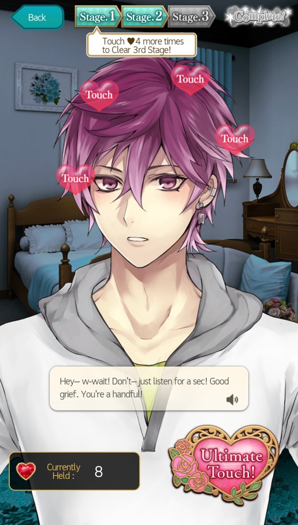Story structure: After completing the prologue, you are prompted to choose a love interest, which will then start you on their route. Throughout each story, you have several opportunities to make dialogue and narrative choices, each giving you points towards one of two endings; Romantic or Dramatic. There are also several challenges to overcome, which are completed through minigames and avatar attire purchases (normal and premium options available).