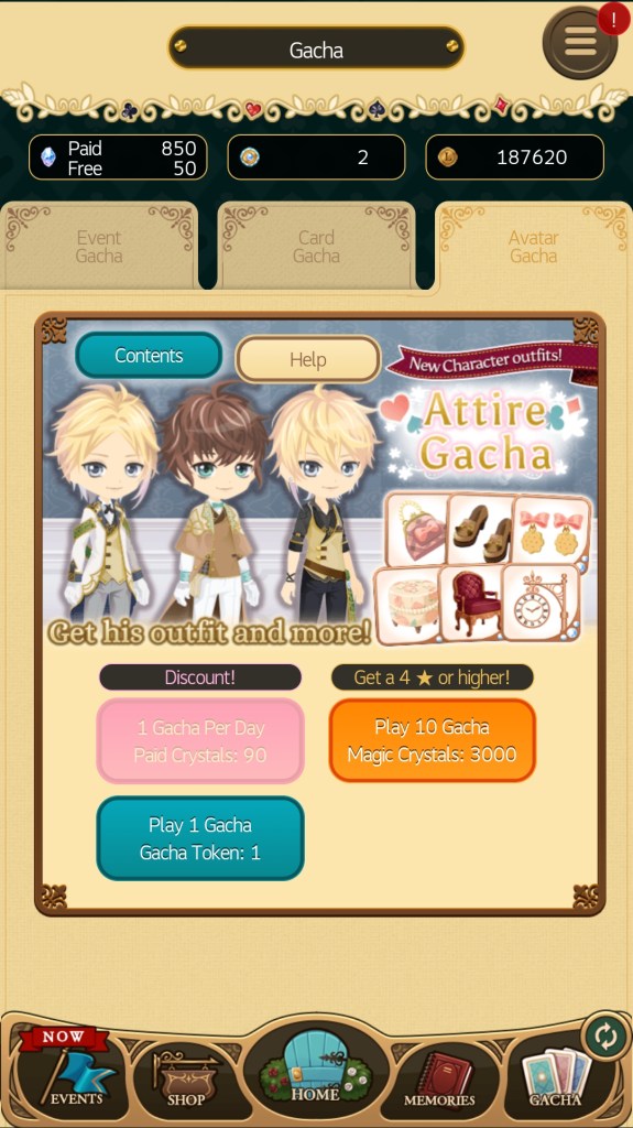 Attire challenges present two options for avatar attire; ‘Premium’ attire and ‘Normal’ attire. This choice affects the type of bonus story you read after completing the challenge. Premium attire is purchased with Magic Crystals (an in-game currency purchased with real money – although you can technically stockpile it for free though log-in gifts and other event bonuses, it just might take a while to do it this way).