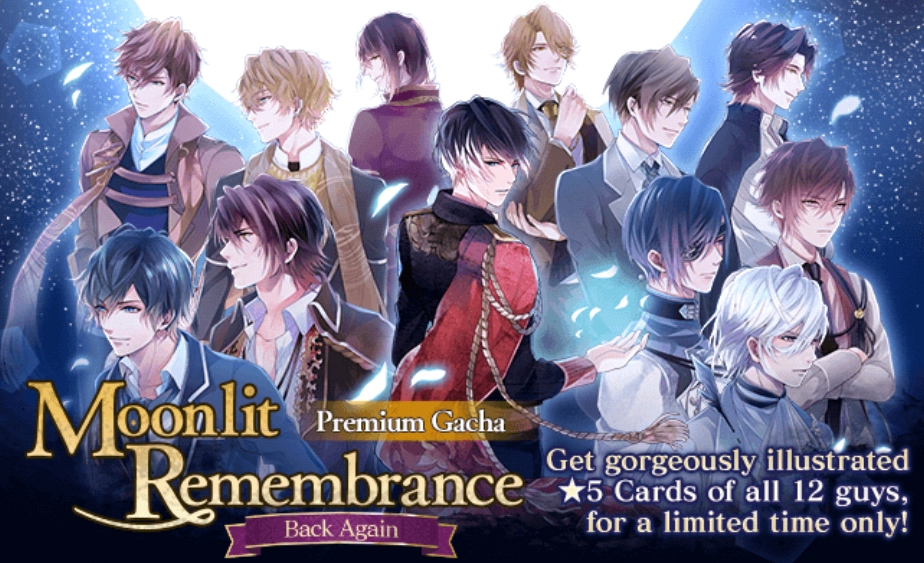 The popular ‘Moonlit Remembrance’ premium gacha is back! There are twelve 5-Star cards available, each featuring one of the vampires in an ethereal, night-time scene.