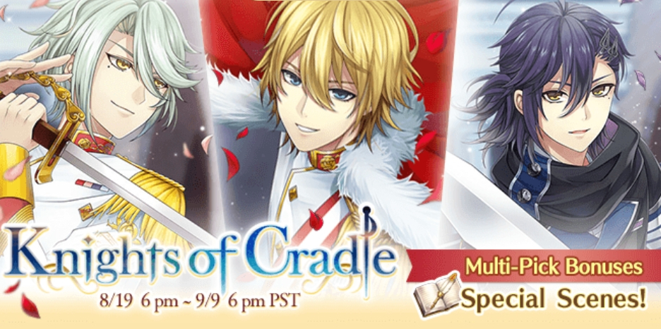The event gacha, ‘Knights of Cradle’, features three exclusive cards – one each for Lancelot, Jonah, and Luka.
