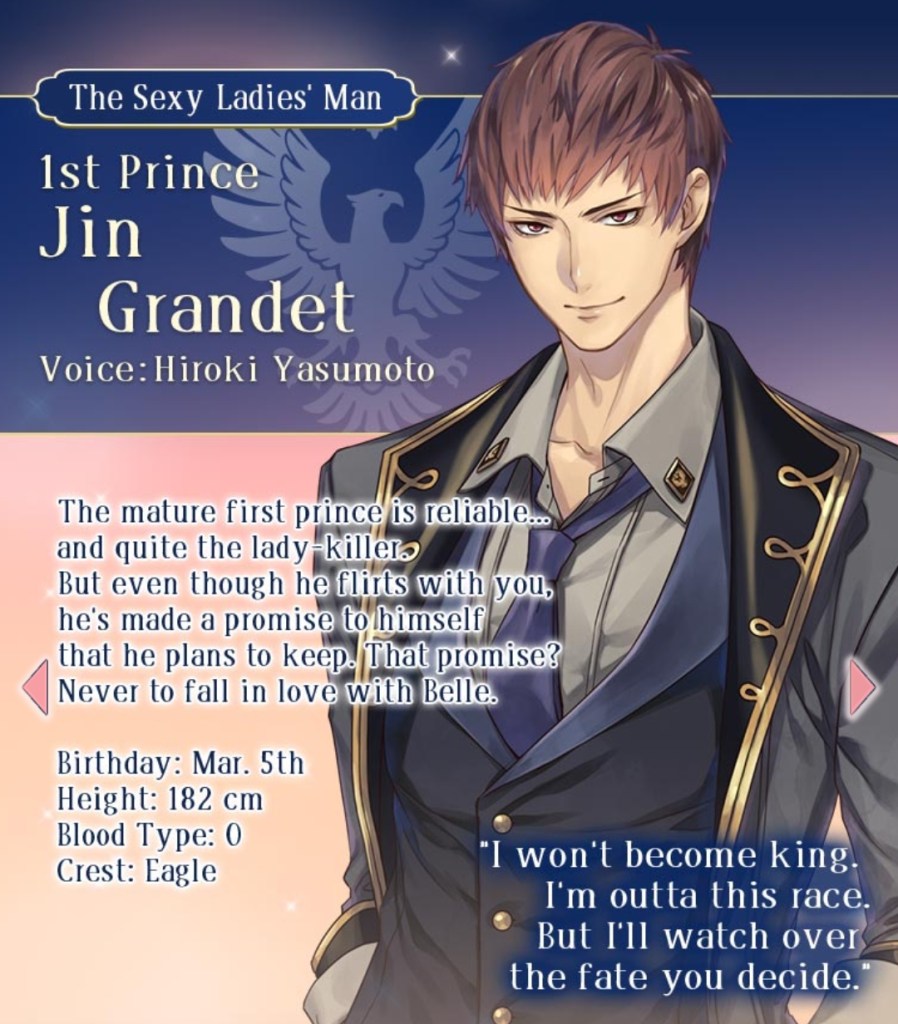 The general theme is that these princes may seem noble, but are actually flawed, dangerous men. Tradition dictates that when a new king needs to be selected, a pure-hearted common woman must be appointed as ‘Belle’, who will then choose the next ruler of Rhodolite, and help these inhuman ‘beasts’ regain their humanity…