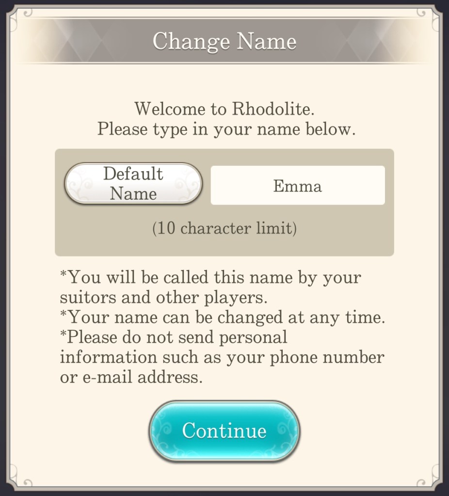 MC in Ikemen Prince has a default name, Emma, which is unusual in the Ikemen Series, but there is still the option to select a custom name if you prefer. So far, I really like the MC in Ikemen Prince. She seems to be more mature than the classic otome heroine, as she laments in the prologue about her friends getting married and settling into their adult lives, while she’s still working in the bookstore, dreaming of adventures and fairy tales.