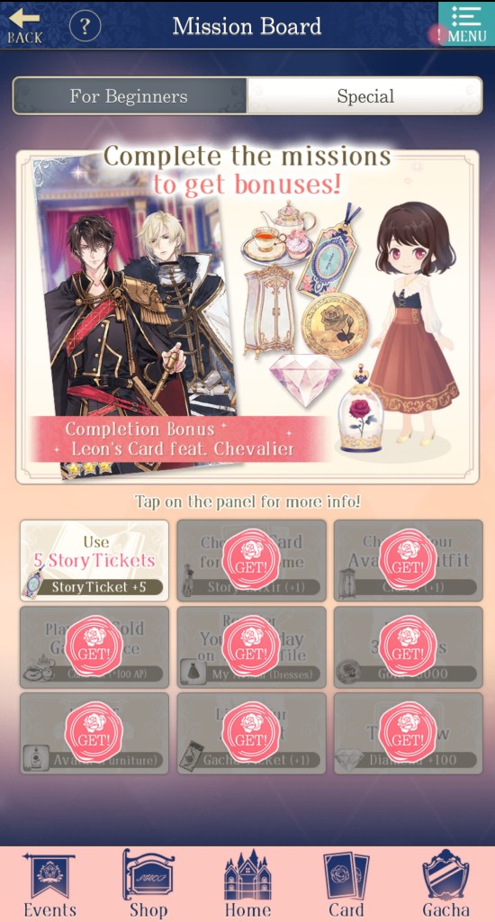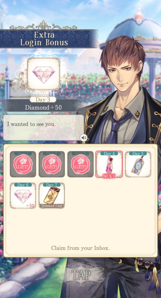 *Just a note about the 5 x free tickets – these don’t accumulate, so you have to use them in order to receive the next day’s tickets. In other words, rather than receiving 5 tickets every day, your maximum of 5 free tickets is replenished each day. If you don’t use your tickets today, you won’t have 10 tickets tomorrow, you’ll just keep the tickets you already have until you use them. Be sure to spend them each day to make the most of them! And remember to do your Salons whenever your stamina replenishes so you can quickly overcome the intimacy checks.