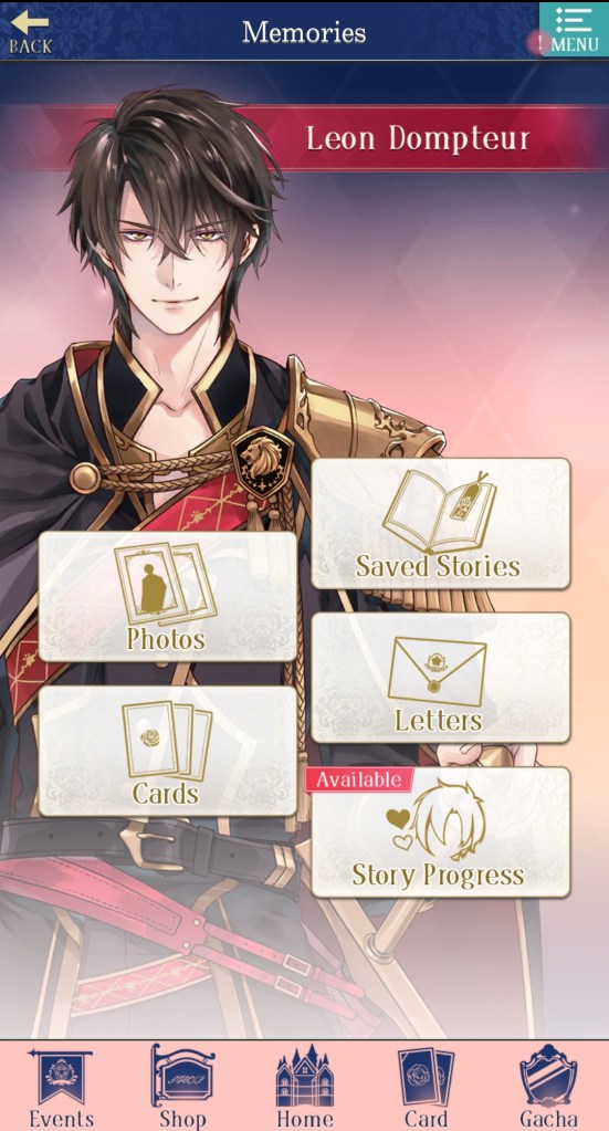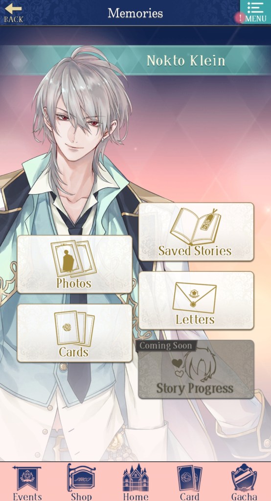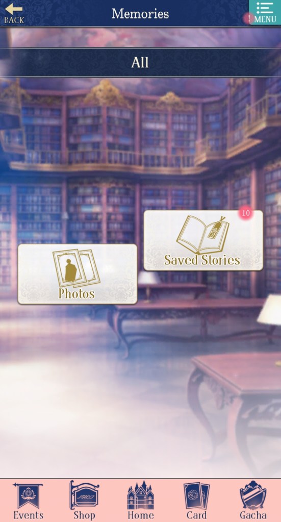 There’s also a button for the ‘Login Bonus‘, which you automatically collect when you login, but if you want to check what you received and what’s coming up, you can do so here. There’s also a button to take you to ‘Memories‘, which isn’t present on the home page, but worth checking out if you want to see the cards, photos, and stories you’ve collected.