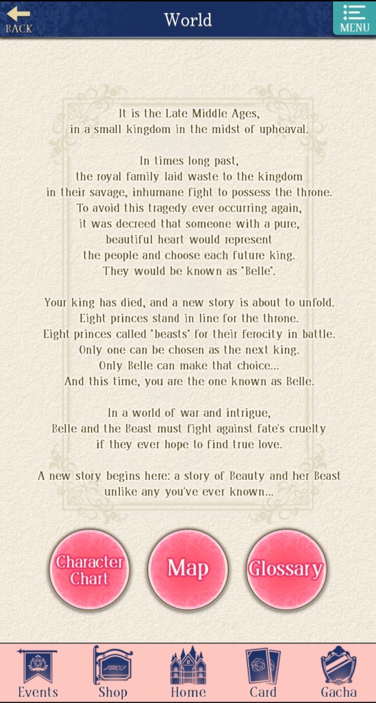 If the prologue is anything to go by, Ikemen Prince’s protagonist is intelligent, brave, and kind, so I have high hopes for our Middle-Ages equivalent of an otome game fan, who also happens to be inspired by Belle from Beauty and the Beast (my favourite Disney princess!).