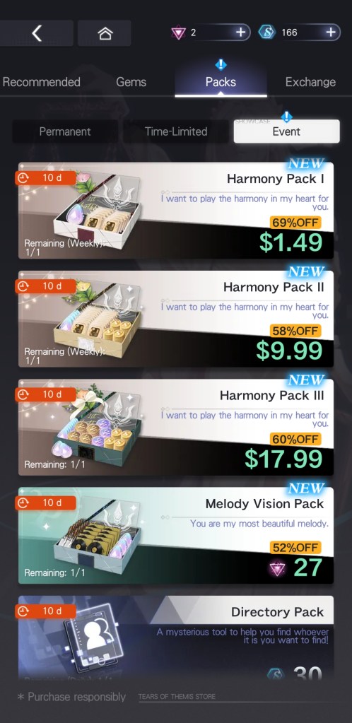 There is a huge variety of packs available in the store for this event, so it’s worth checking them out to see if there’s anything you want to pick up while you can. The range of items available includes energy drinks, card and skill upgrade items (Vyn-oriented), and Tears of Themis.