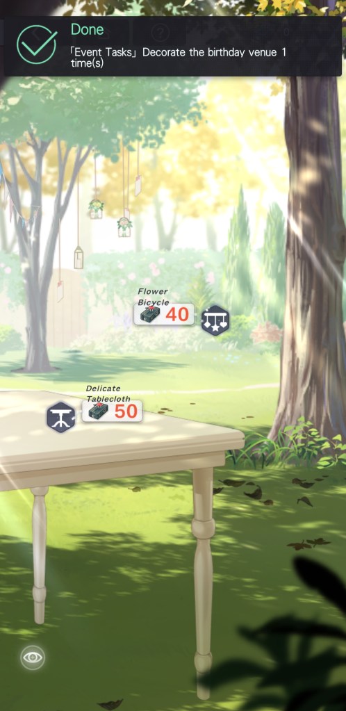 This is a fairly simple minigame, but I’m enjoying seeing the party venue slowly become more decorated as I progress in the event.