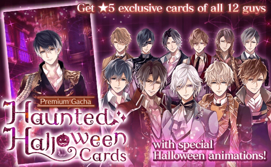 Ikemen Vampire has also released the Premium Gacha Event, ‘Haunted Halloween’! For the event, new 5-Star cards of all 12 love interests are available, and each card comes with unique Halloween-themed animations.