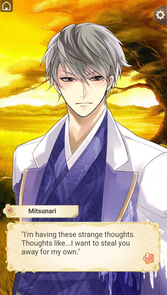 The romance does take a little while to pick up, but thanks to all of the accidental flirting and ‘friendly’ affection, the pacing doesn’t feel too slow. I loved the contrast of Mitsunari’s naivete and MC’s more ‘mature’ inner monologue, and I think that otome fans who prefer to play a more proactive and dominant role will enjoy their relationship dynamic a lot more than I did.
