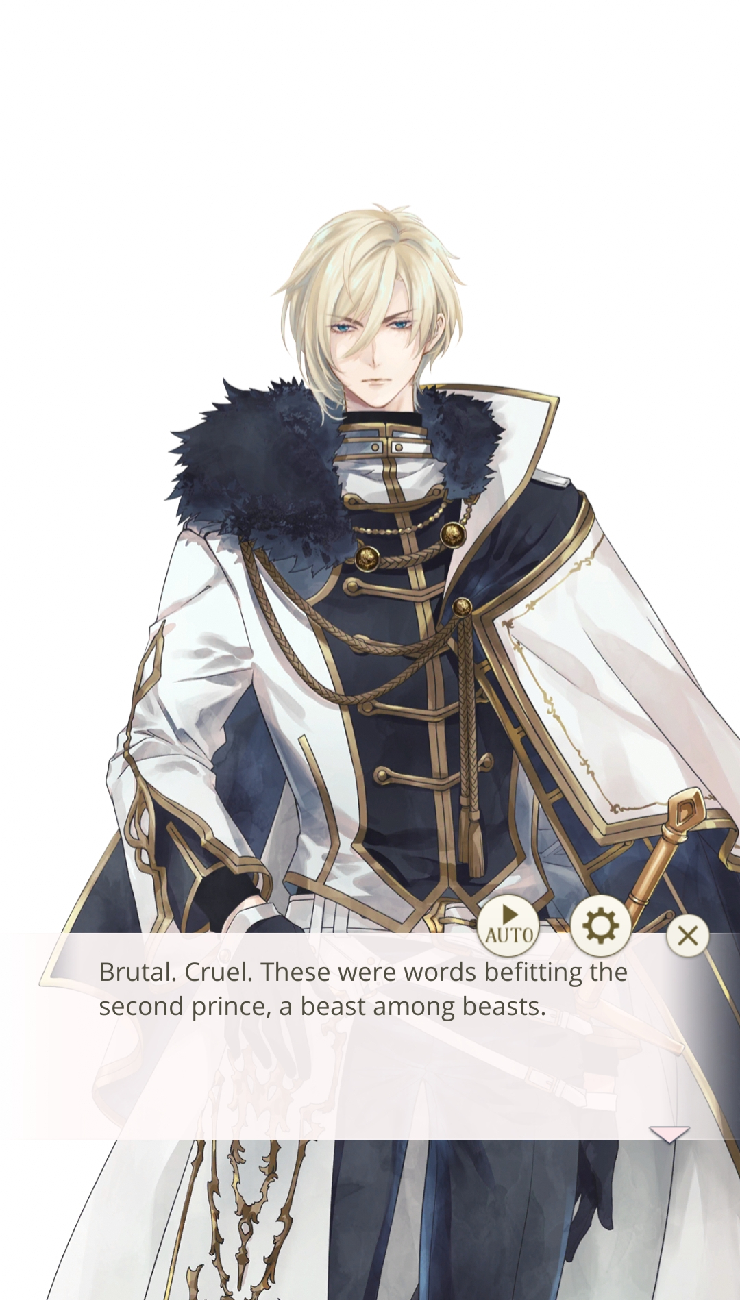 The Brutal Beast – is Prince Chevalier’s charming nickname… and it suits him. With a cold, intimidating aura and a disdainful glare, he assuredly informs you that your decision as Belle means nothing to him– he will be the next king.