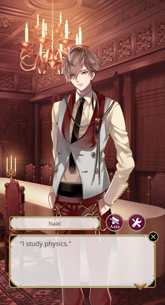 I also like how many references are included to the historical figures the love interests are based on. Aside from the obvious mentions of gravity, there’s also a moment in the story where Isaac and MC discuss rainbows, and how the colours came to be identified. Isaac Newton is who we have to thank for rainbows as we know them today, so I liked that there was an allusion to his broader scope of work, even in such a seemingly innocuous (but romantic) scene.