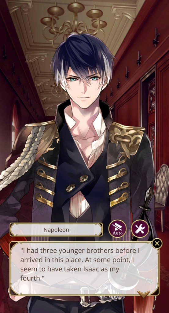 Napoleon says he thinks of Isaac as a younger brother, and that he’s awkward and defensive because he’s uncomfortable in his own skin. It seems that Isaac intentionally isolates himself, but he seems far too startled whenever MC comes close for it to be simply due to his shyness…