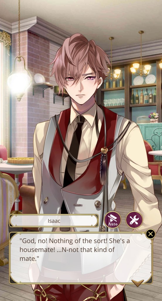 Second playthrough: I’ve now completed two playthroughs of Isaac’s route, so this review will include a comparison of both his Romantic and Dramatic endings, as well as mini-reviews of each story branch, to help you decide whether to choose the ‘Normal’ or ‘Premium’ story option.