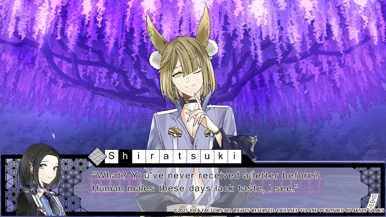 Shiratsuki’s route felt the most ‘slice-of-life-y’, with very little in the way of dramatic plot, and much more focus on daily interactions with him and the other Ayakashi. However, I felt that this route stuck to the appeal of this genre well, and the other kitsune side characters were entertaining enough that I didn’t mind having so many interactions with them. If you’re looking for a low-stakes, wholesome route, then Shiratsuki is your best bet.