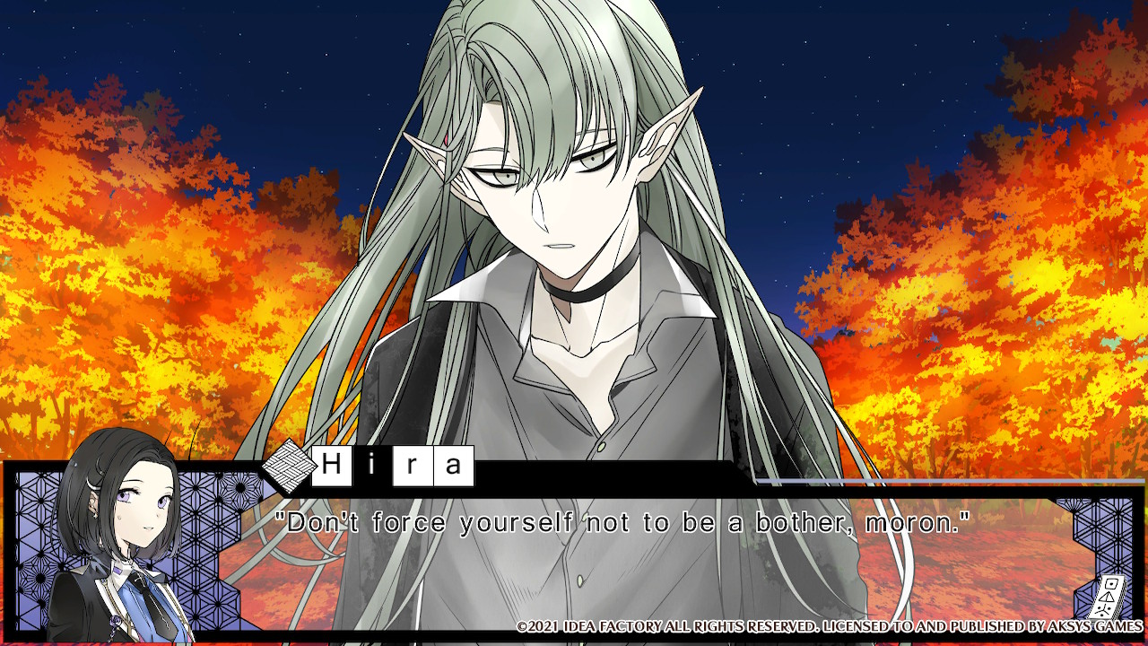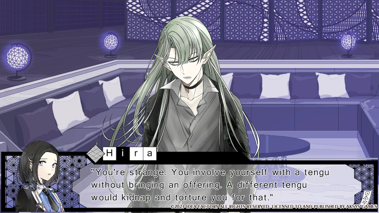 Other reviews on Hira seem to be fairly mixed, but I personally loved his route. I can see why Akuroou is the fan favourite, but I think Hira may just be my personal best boy. He ticks all the right boxes for my tastes (an angsty, rude, emo elf tengu boy) and I loved everything about his character design. I also liked his playful (but reliable) dynamic with MC, particularly how aggressively persistent she was in getting to know him, despite him trying to run away at every turn.