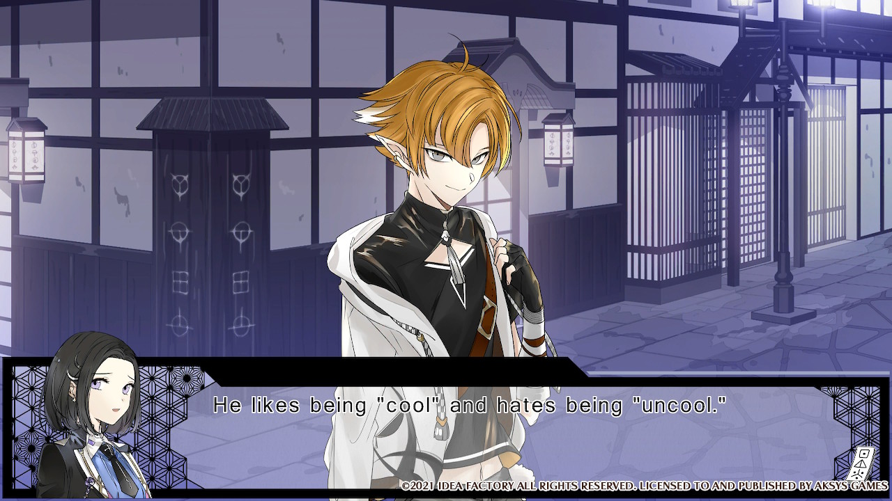 I’m aware this is starting to look a little repetitive, but I promise other characters have a different recommended ending order! Shiratsuki, Hira, and Akuroou’s routes all felt pretty similar to me in terms of tone, plot reveal, and story structure. Akuroou’s romantic ending was my favourite for the satisfying payoff, but his Lost Love ending was almost just as romantic… albeit in a tragic way.