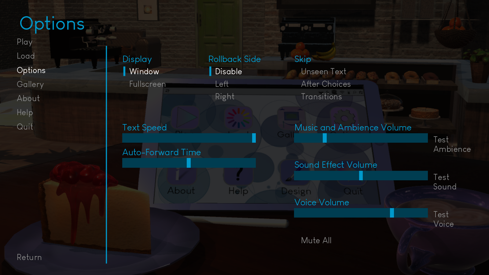 My only recommendation in terms of accessibility would be to maybe make the font bigger, or offer different options that make it easier to read. The text box is opaque, so there shouldn’t be any issues with transparency, but I did occasionally find the font a little small for me – particularly in the player choice boxes.