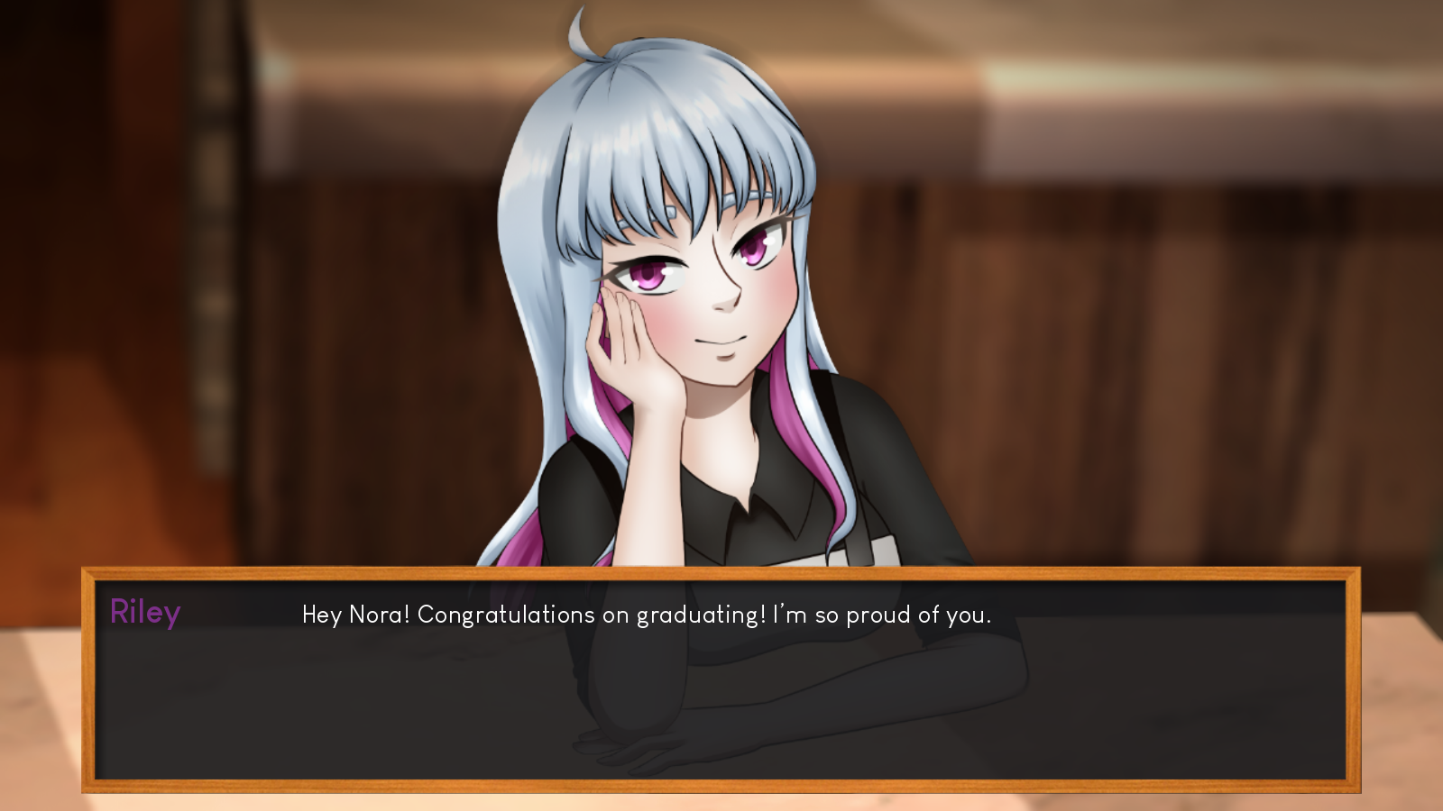 Riley is your best friend of five years and local caffeine dealer, who dreams of being a full-time fashion designer. She’s cheerful, supportive, and it’s clear she already has a deep connection with the protagonist. In the demo, their relationship feels almost entirely platonic, but there were a couple of moments that I thought could be a little flirty – so I’m interested to see how this develops over the course of the story.