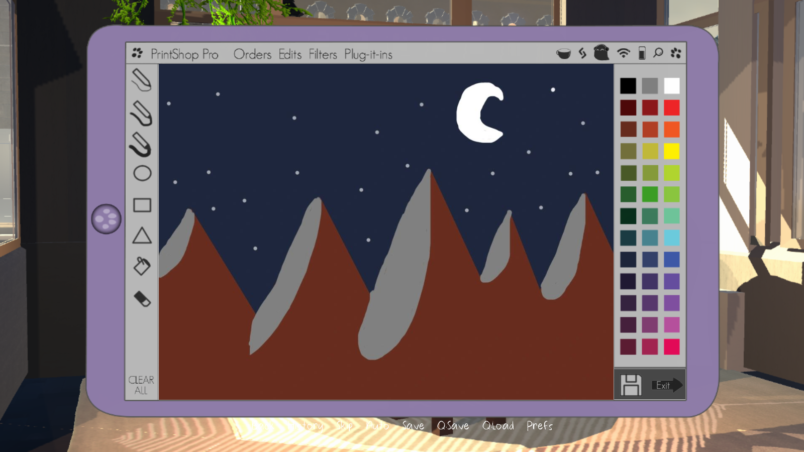 In terms of gameplay, there’s the usual ‘click to read’ system that visual novels use, as well as a built-in art minigame that lets you make your own designs. This is a cute and fun way to add an extra element of player interactivity that makes sense for the story. It doesn’t disrupt the momentum of the plot, and it’s entirely optional, so you only have to engage as much as you want to.