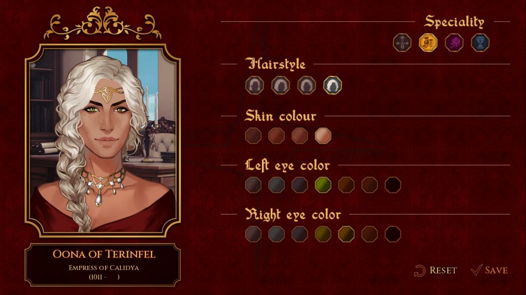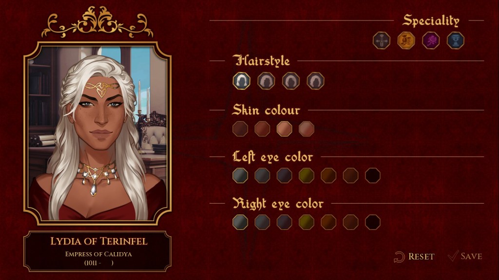 “During your reign, you will face many difficult choices, which can dramatically change the future of Calidya as well as your own destiny. You may even find love in difficult times, but be careful: love can equally help you overcome the perils you face and get in the way of your duty…”