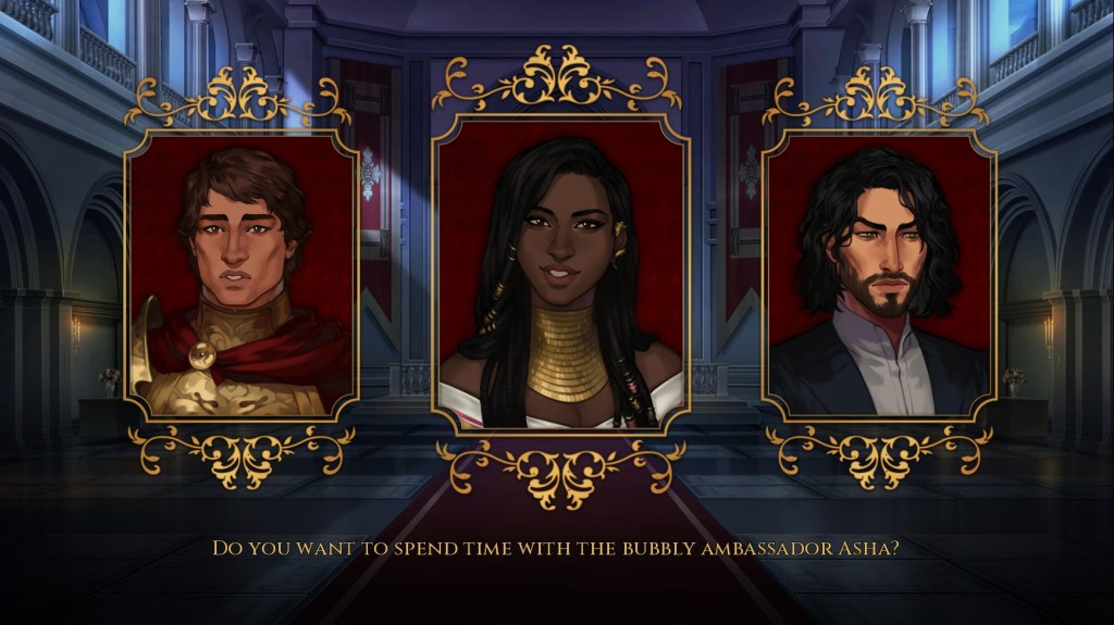 Again, as this is just the beginning of the story, it’s difficult to tell where the plot hooks will lead, but I liked that her emotional connection with MC felt real, as they bonded over their shared experiences and similar values. I got the sense that there’s more going on beneath the surface, and Asha’s intentions aren’t completely clear, so I’m excited to read more of her story in the full release.