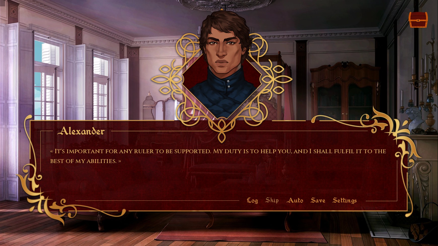 In a setting rife with court conspiracies and exhausting social pretences, your reliable childhood friend and loyal general, Alexander, is a breathe of fresh air – with his awkward charm and casual, established dynamic. After a night of buttering up sexist nobles, it’s cathartic to step outside with your bestie, relax a little, and be yourself.