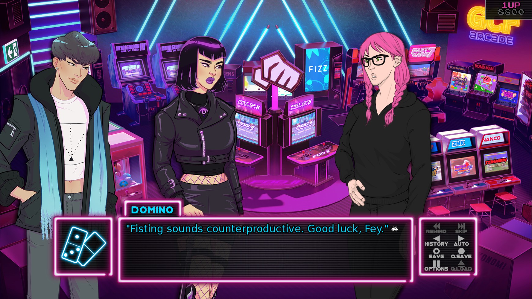 “You’re an aspiring gamer searching for esports glory on the Fist of Discomfort 2 Pro Tour. Seeking a partner to play with, you join a team of players who hang out at Good Clean Fun, a combination pizzeria / laundromat / arcade.