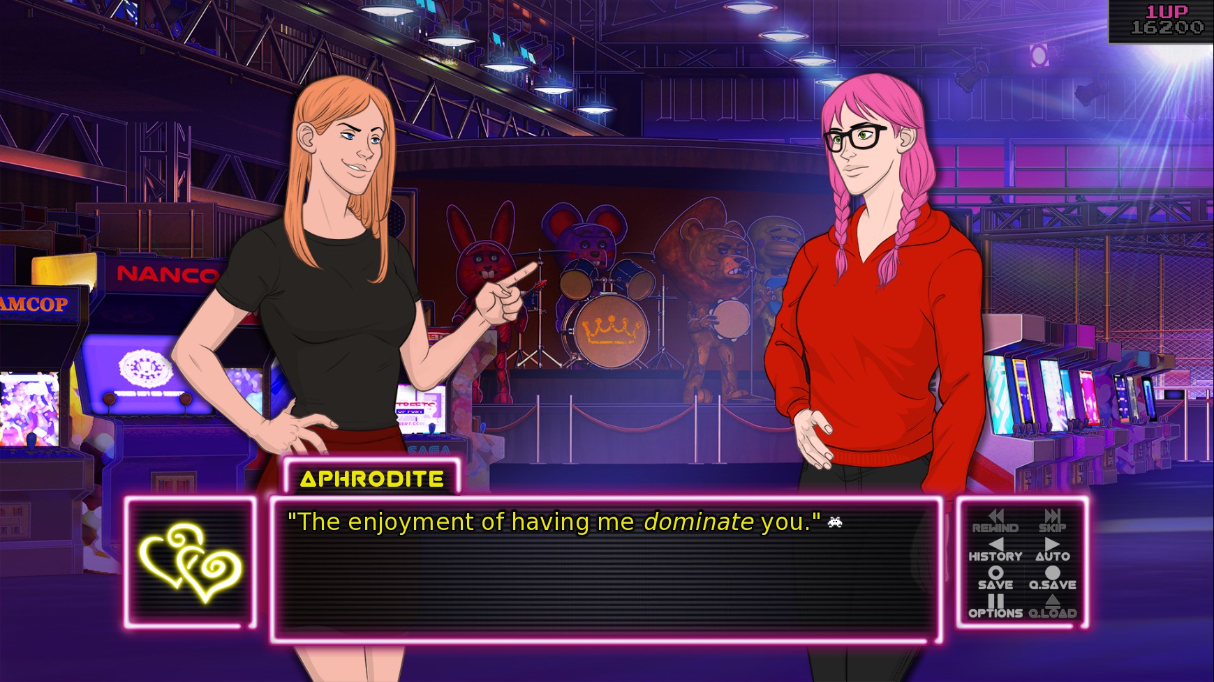 The setting and cast of both games are different, but whether it’s achieving your masochistic dreams of joining a coven of sexy-scary vampires, or becoming an arcade e-sports champion with your rag-tag team of misfit gamers, Aenne Schumann has your back.