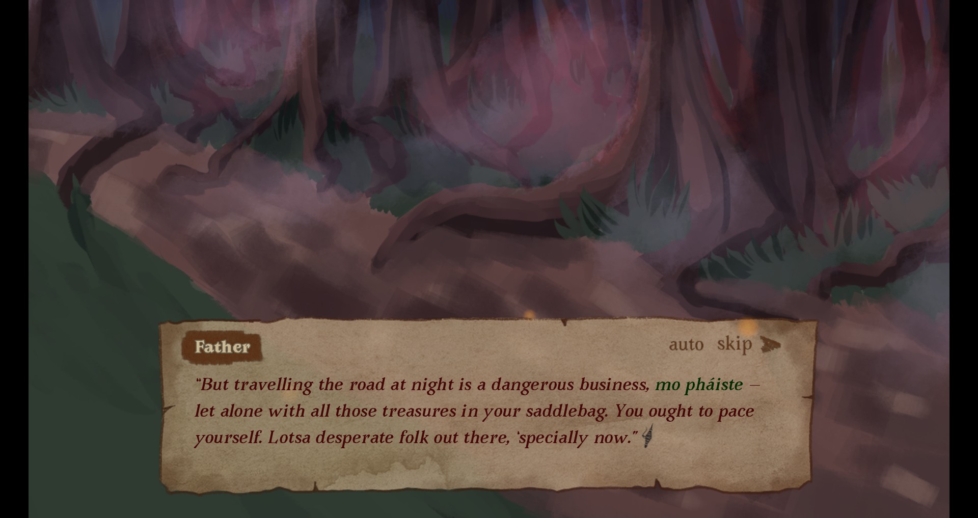 There are many stories about fairies out in the world – and even a few romantic visual novels – but one thing that sets ‘The Good People’ apart from the rest is its regular use of the Irish language throughout the game. This not only becomes a fun way to see the language used in context (many otome fans use games to learn Japanese, so why not Irish too?), but also further facilitates the player’s immersion into the world of the game.
