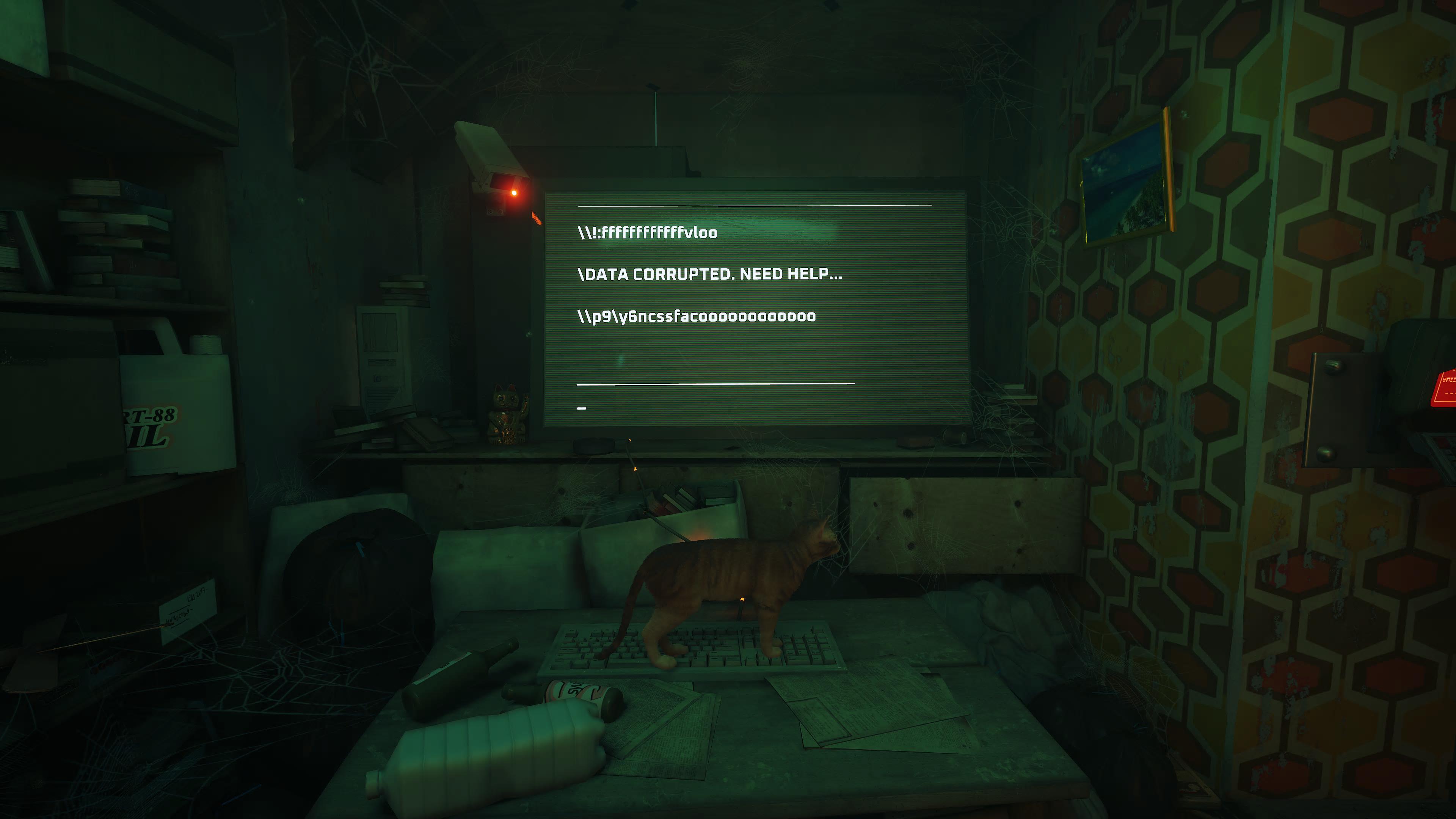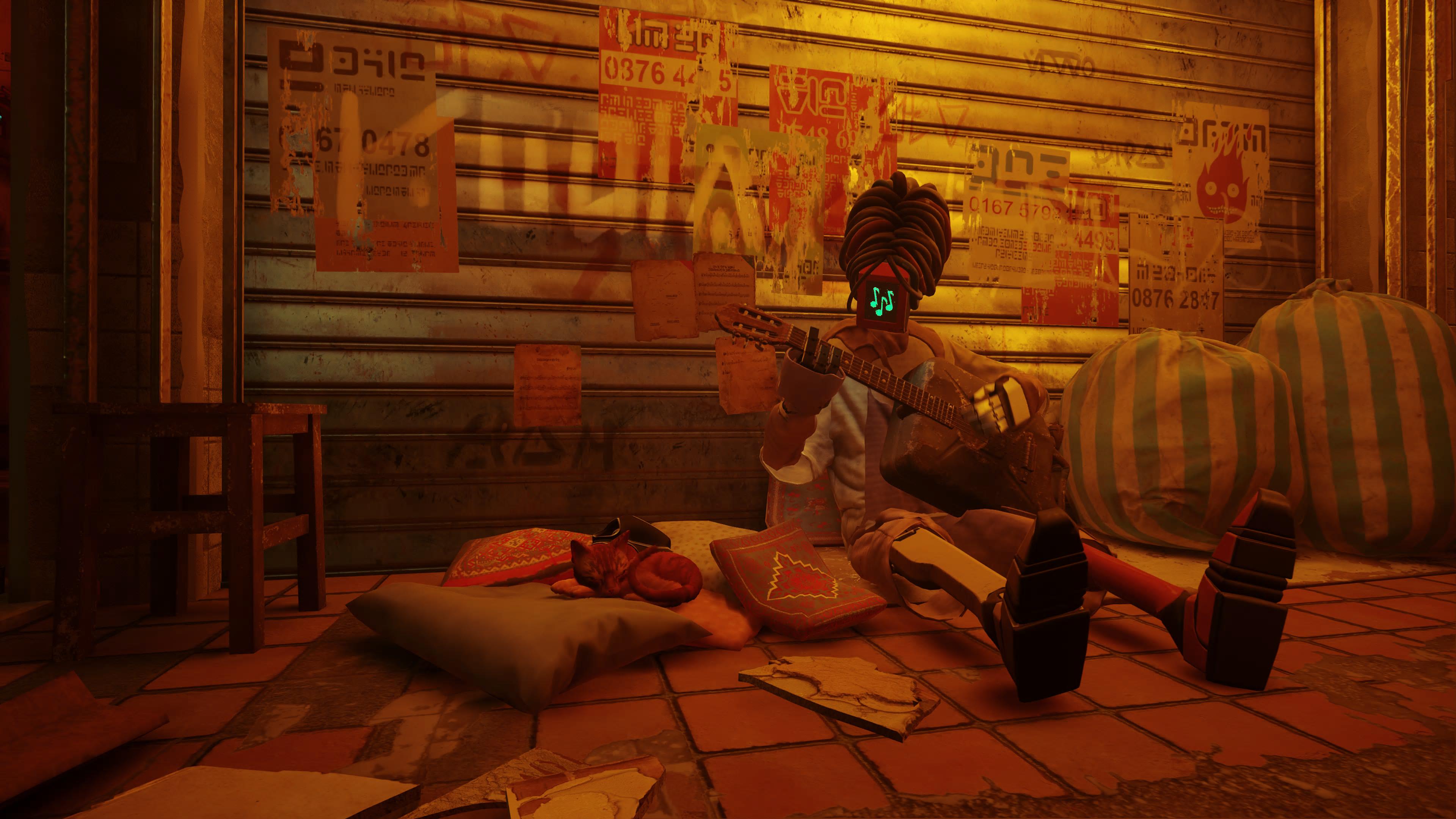 The exploration half of the game is where Stray’s unique charm can truly shine. Roaming around each location, jumping higher than a human could (proportionately, that is), and, of course, knocking things off ledges, are just a few of my favourite activities in the game.