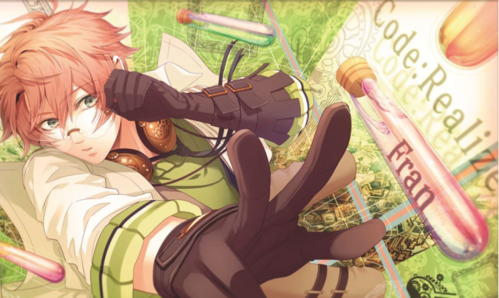 One of the biggest highlights of Code: Realize is getting to play the story as Cardia, the MC. Her first name can be changed, but the voice actors will say her default name if you leave it. Cardia is a young woman of unknown age, depicted as late-teen, who is introduced as a girl with poisonous skin. She is the blankest of blank slates starting out. As apathetic as it gets.