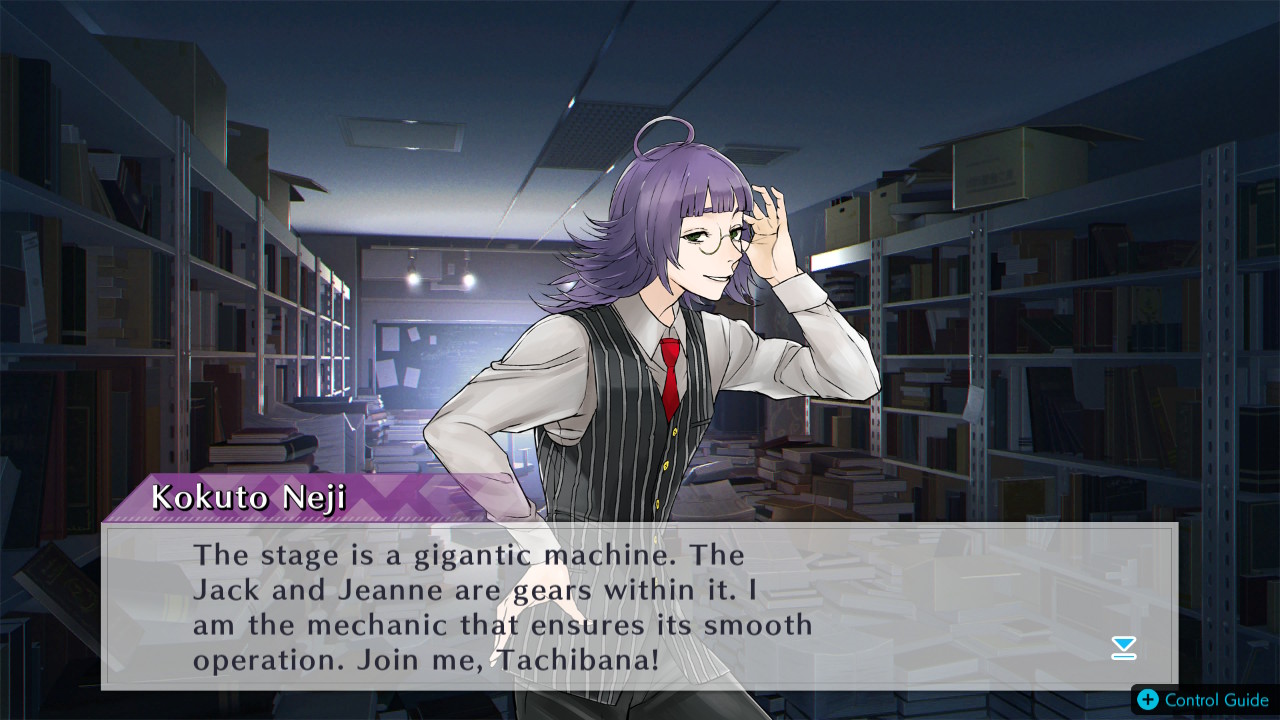 The visuals in Jack Jeanne are a work of art. While the opening cinematic may not match the tone of the story to this point in my playthrough, the art and music throughout the game have been phenomenal. There’s an air of elegance and poetry befitting a game about theatre, and the early scenes feature a variety of illustrative CGs that showcase just how much time, energy, and artistic flair has been put into the game.
