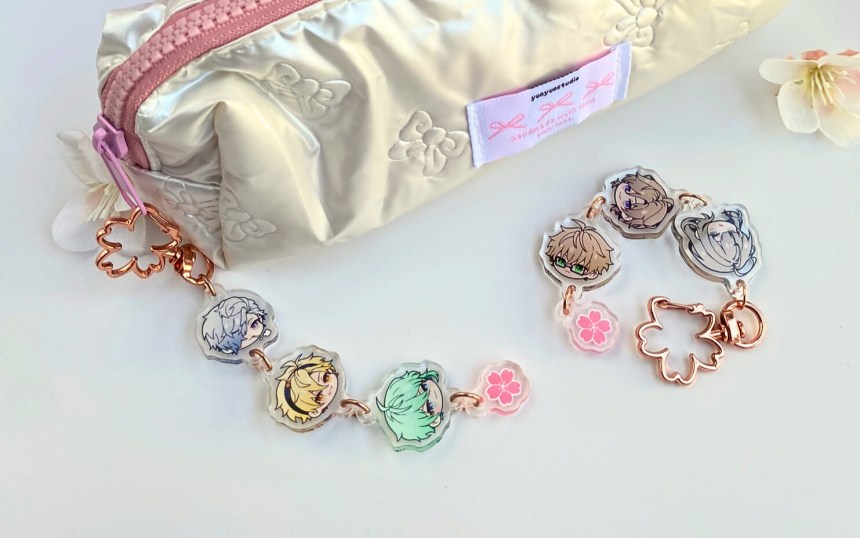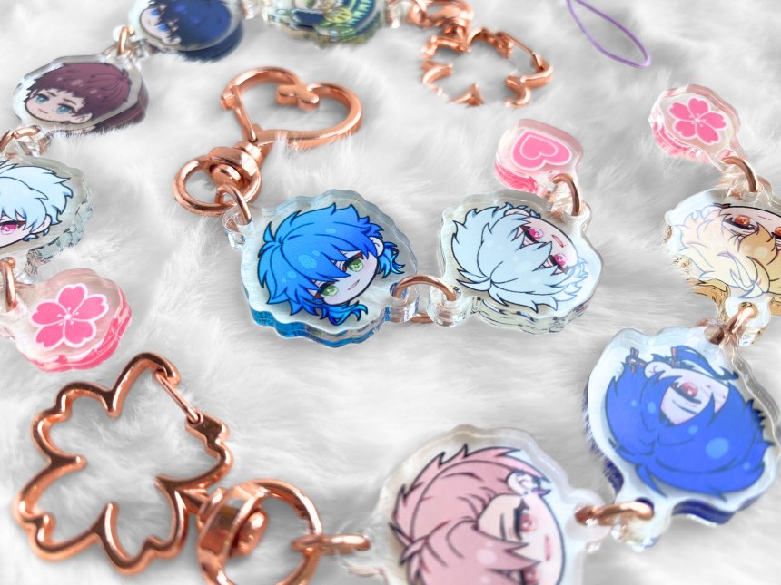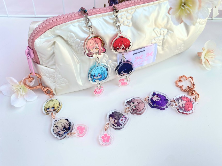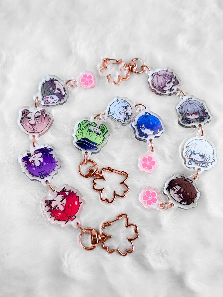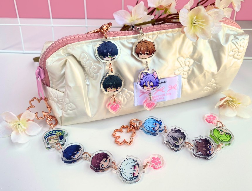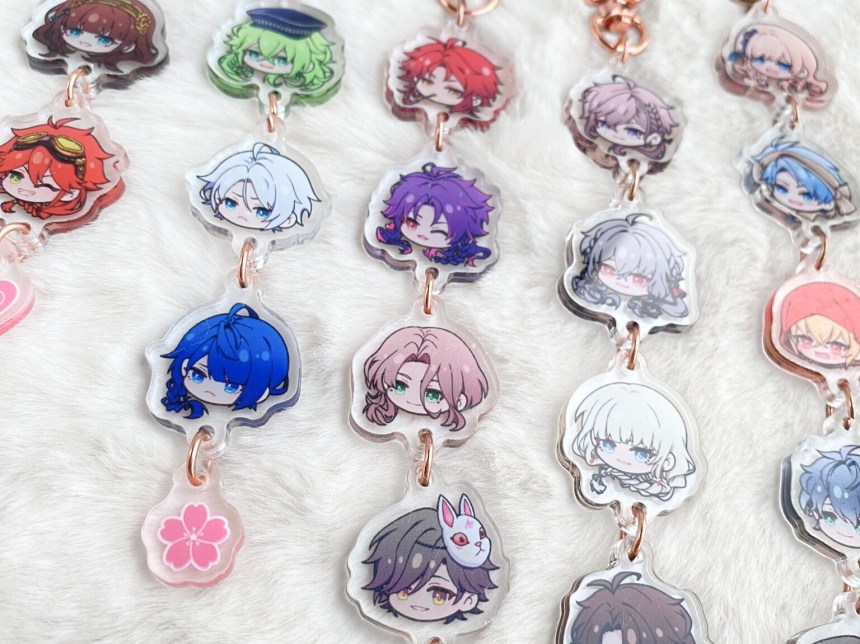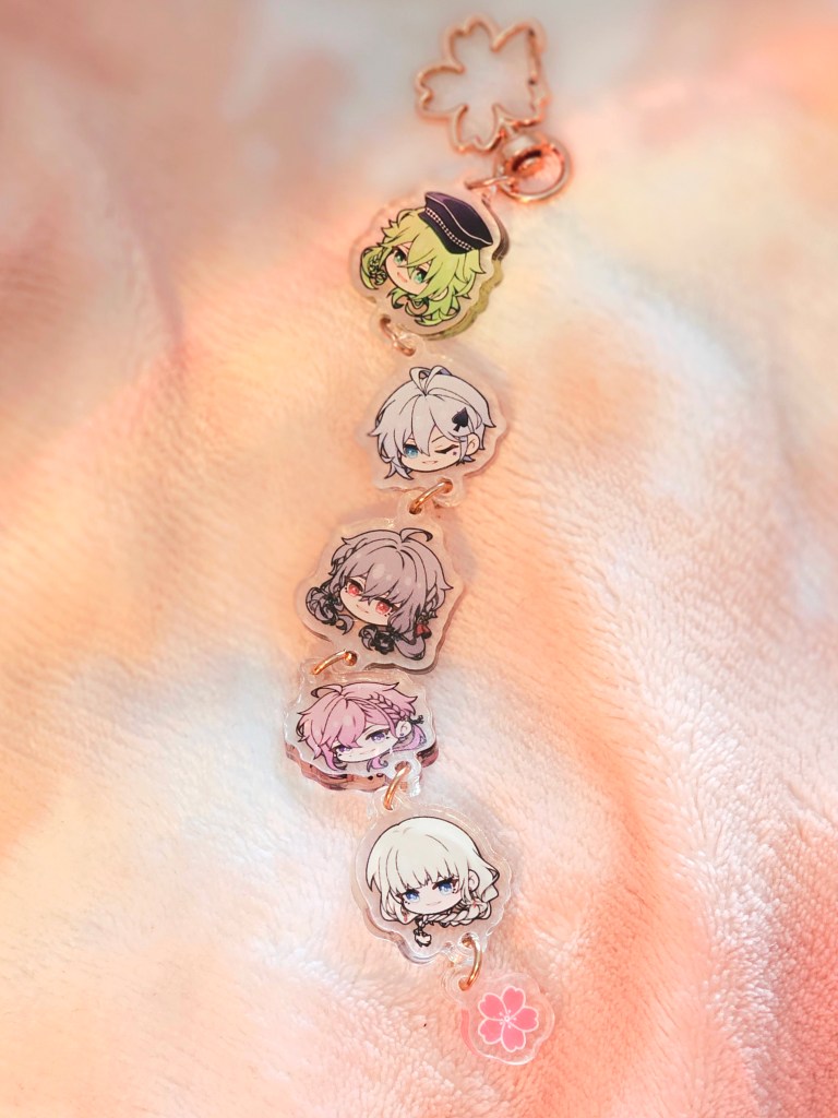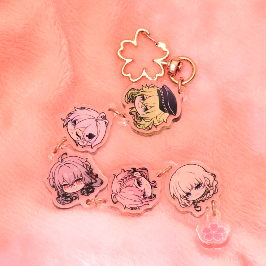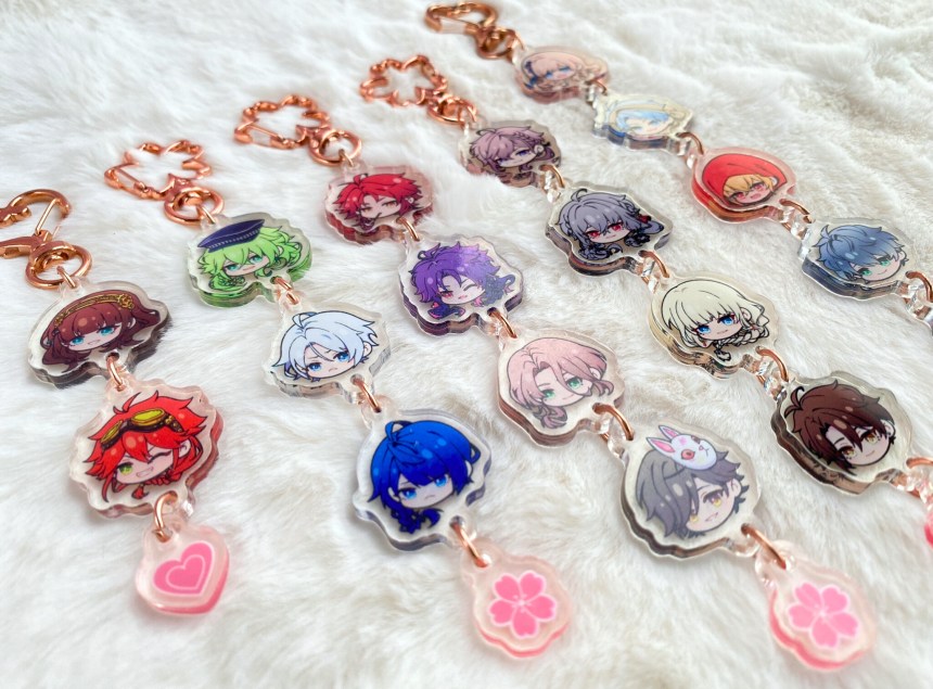 If you like the chibi head designs, you can also get them as a customised keychain. You can choose which characters to add, including MCs, in the best pick-n-mix I’ve ever seen. I chose my favourites from two of my favourite games, and I love it to pieces!