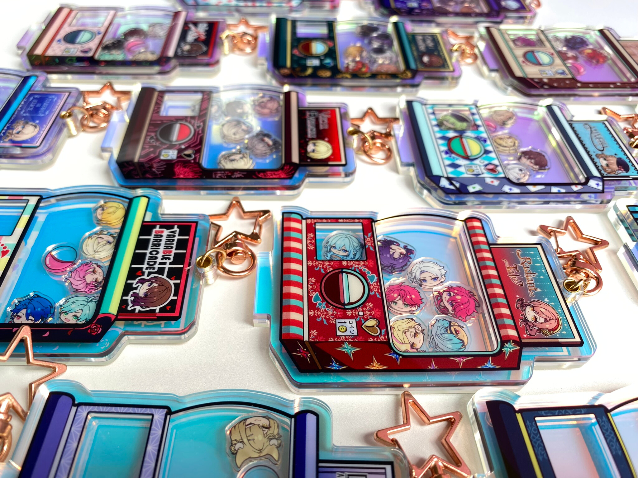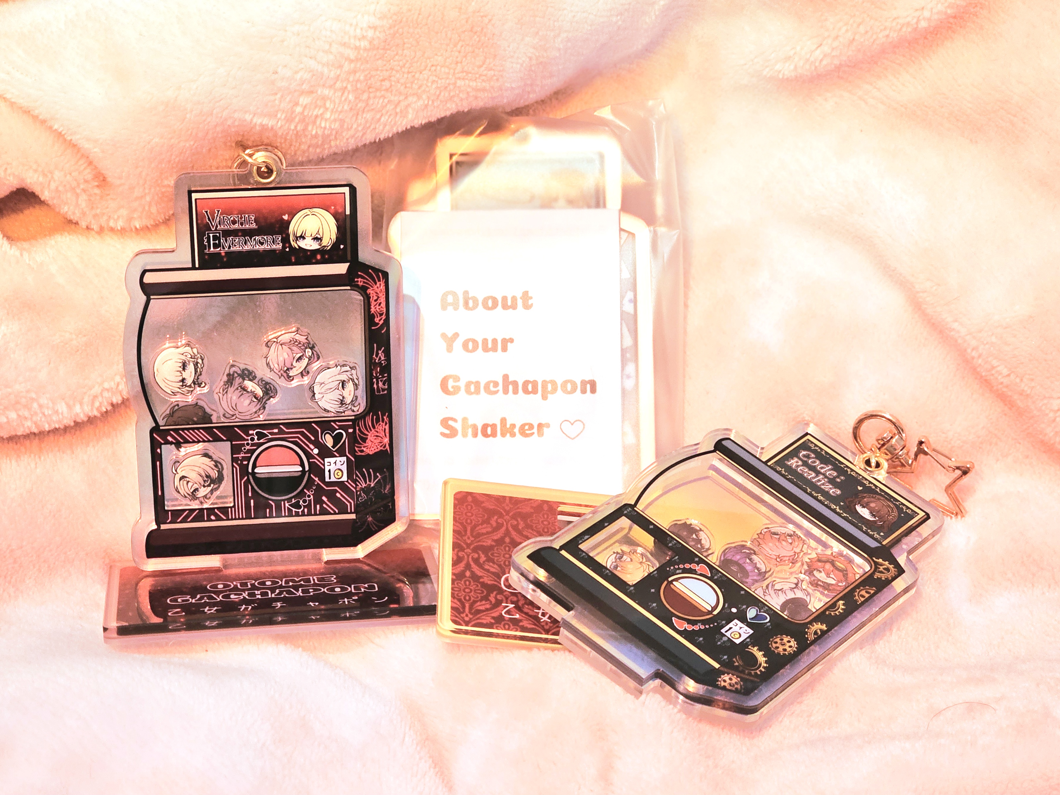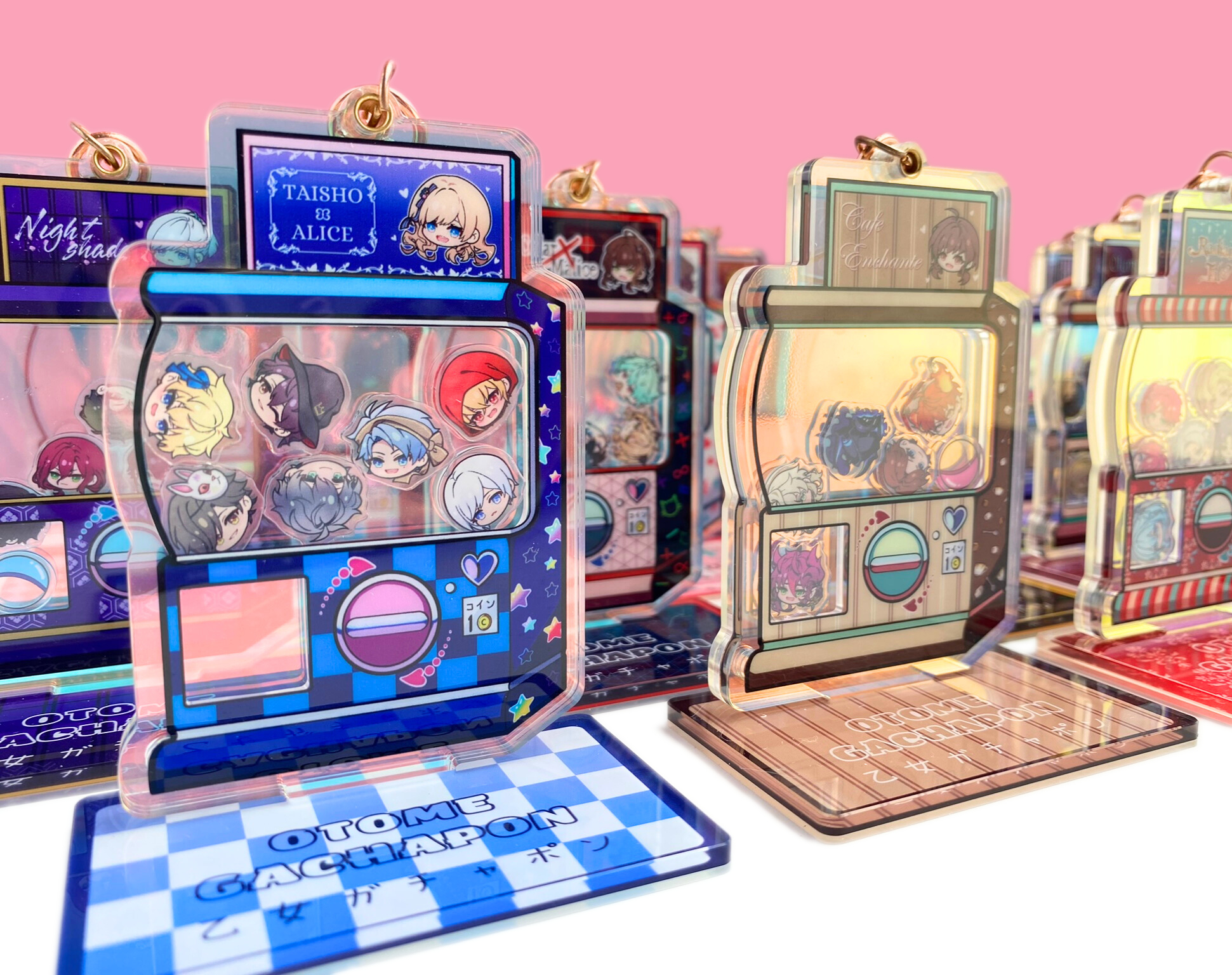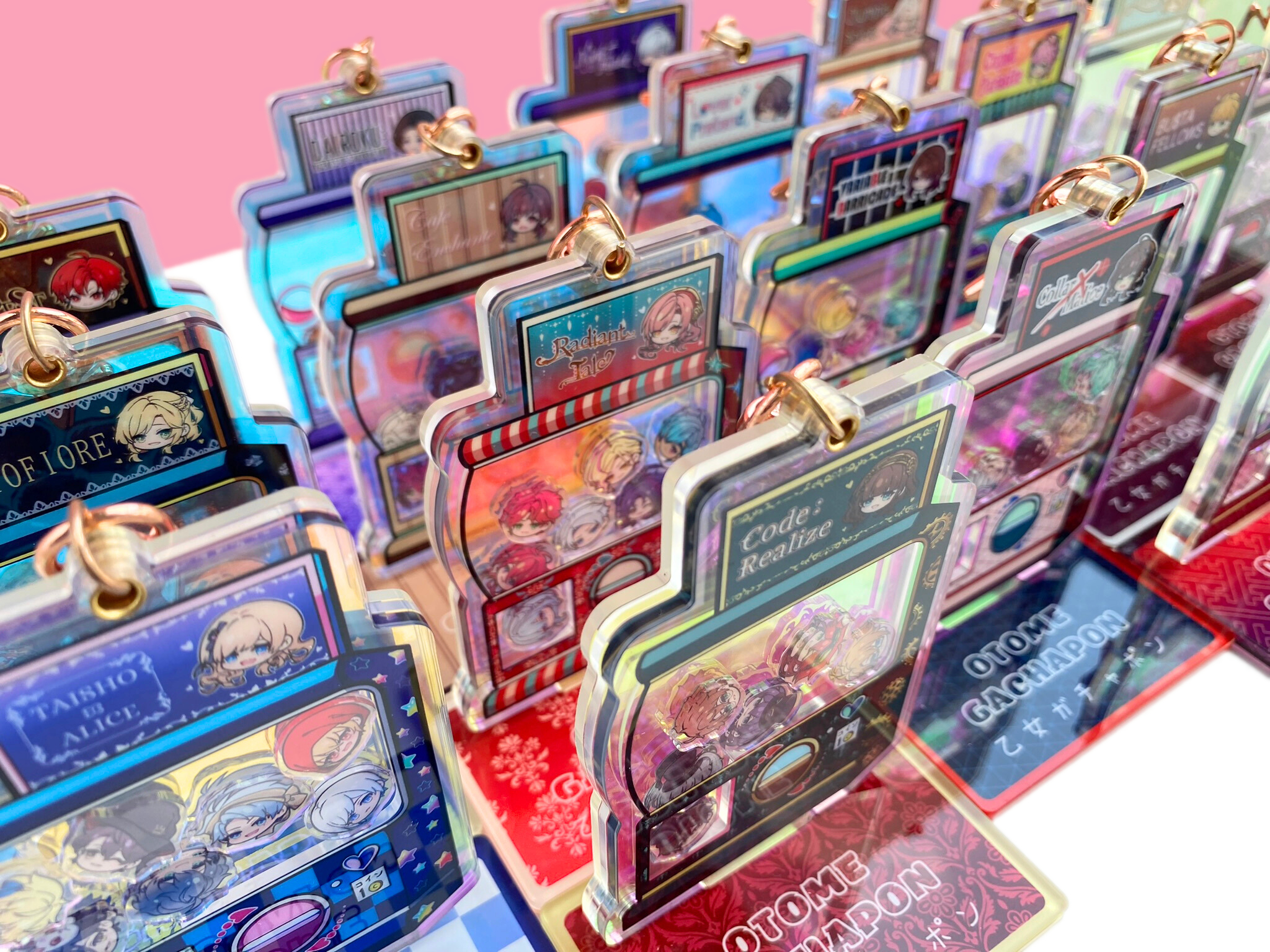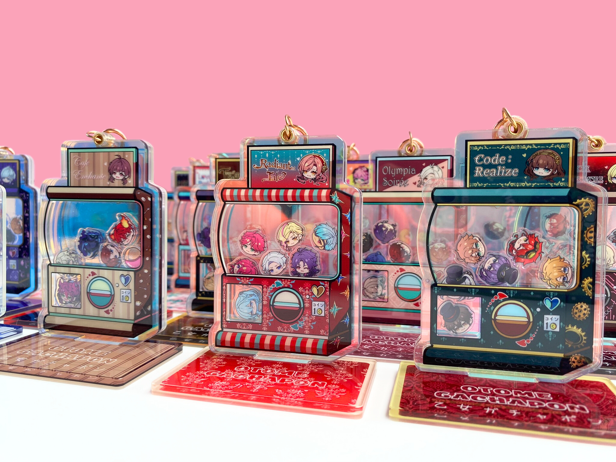 If you like the chibi head designs, you can also get them as a customised keychain. You can choose which characters to add, including MCs, in the best pick-n-mix I’ve ever seen. I chose my favourites from two of my favourite games, and I love it to pieces!