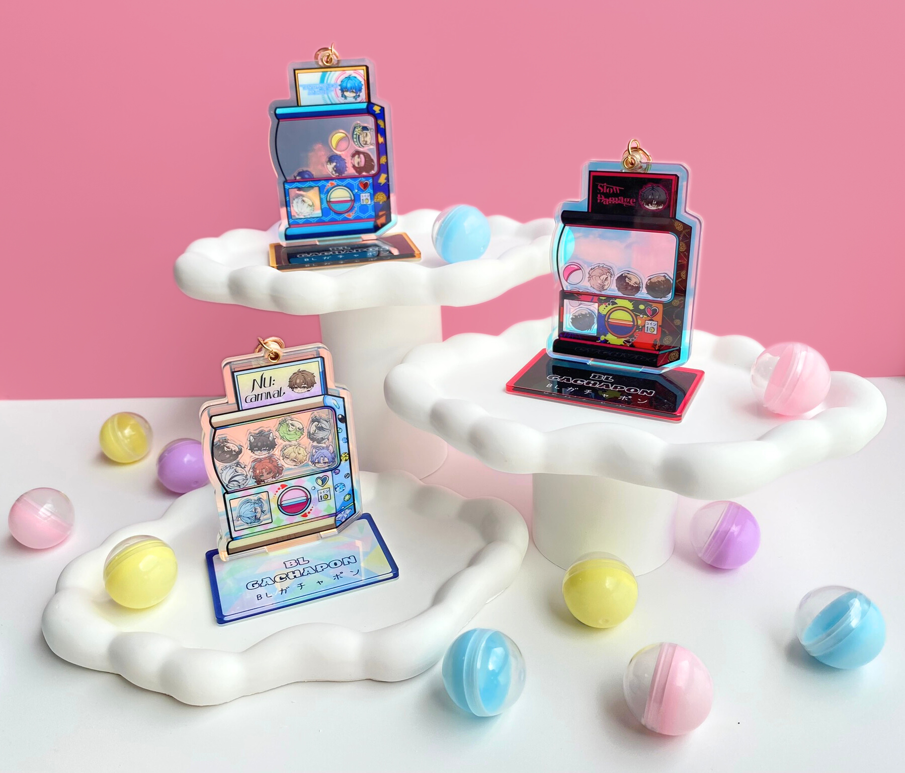 ☆ Products: Gachapon shaker charms, custom charms, sticker sheets, washi tape