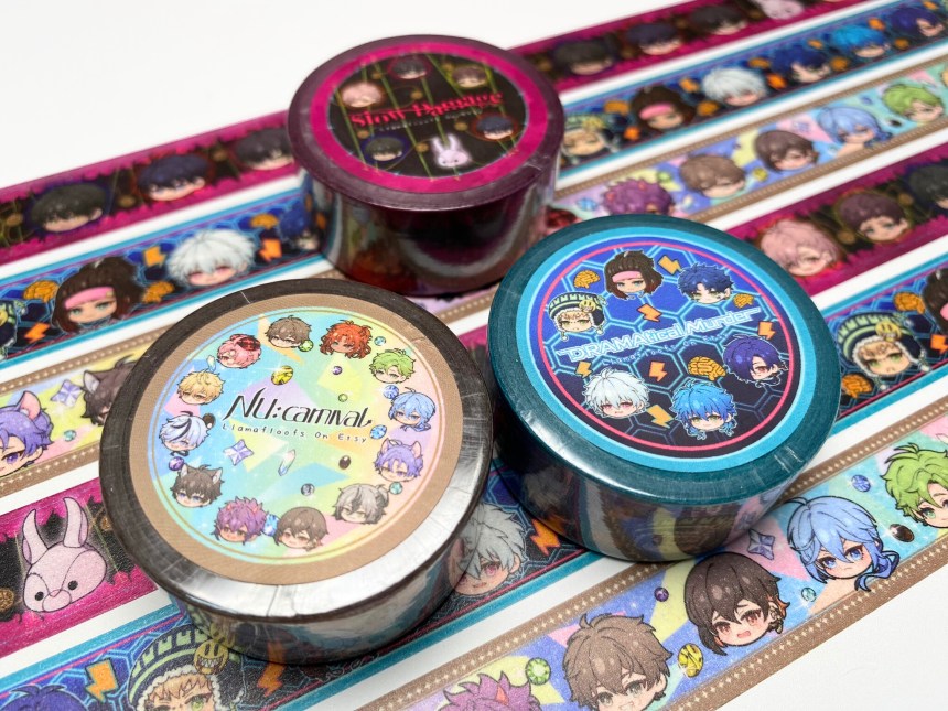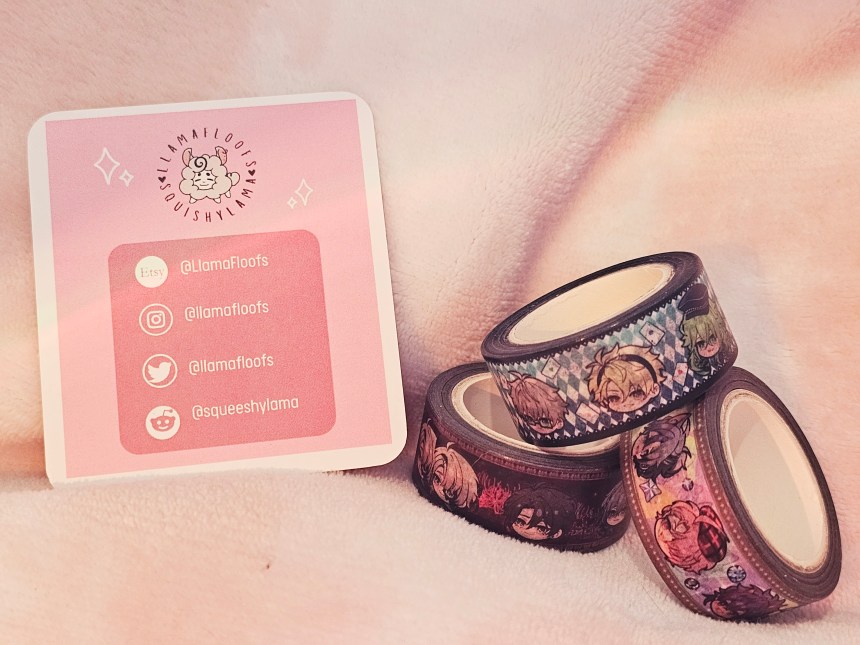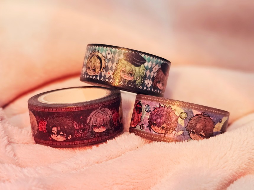 The same praise I’ve been giving out goes for the washi tapes too. They’re bold, beautiful, and there’s something incredibly cute and satisfying about seeing their little heads all lined up in a row… That sounded a little more psychopathic than I expected, but I swear it’s wholesome in context! I don’t know if I’ve mentioned this before, but I’m a bit of a (lot of a) scrapbooker, and card-maker, so I tend to hoard washi tapes and use them a lot in my arts n crafts sessions. Which is actually what motivated me to make my first LlamaFloofs order! I just can’t pass up on a washi tape when I see one, especially when it has all my husbandos lined up in a very wholesome, definitely-not-concerning, loving way.