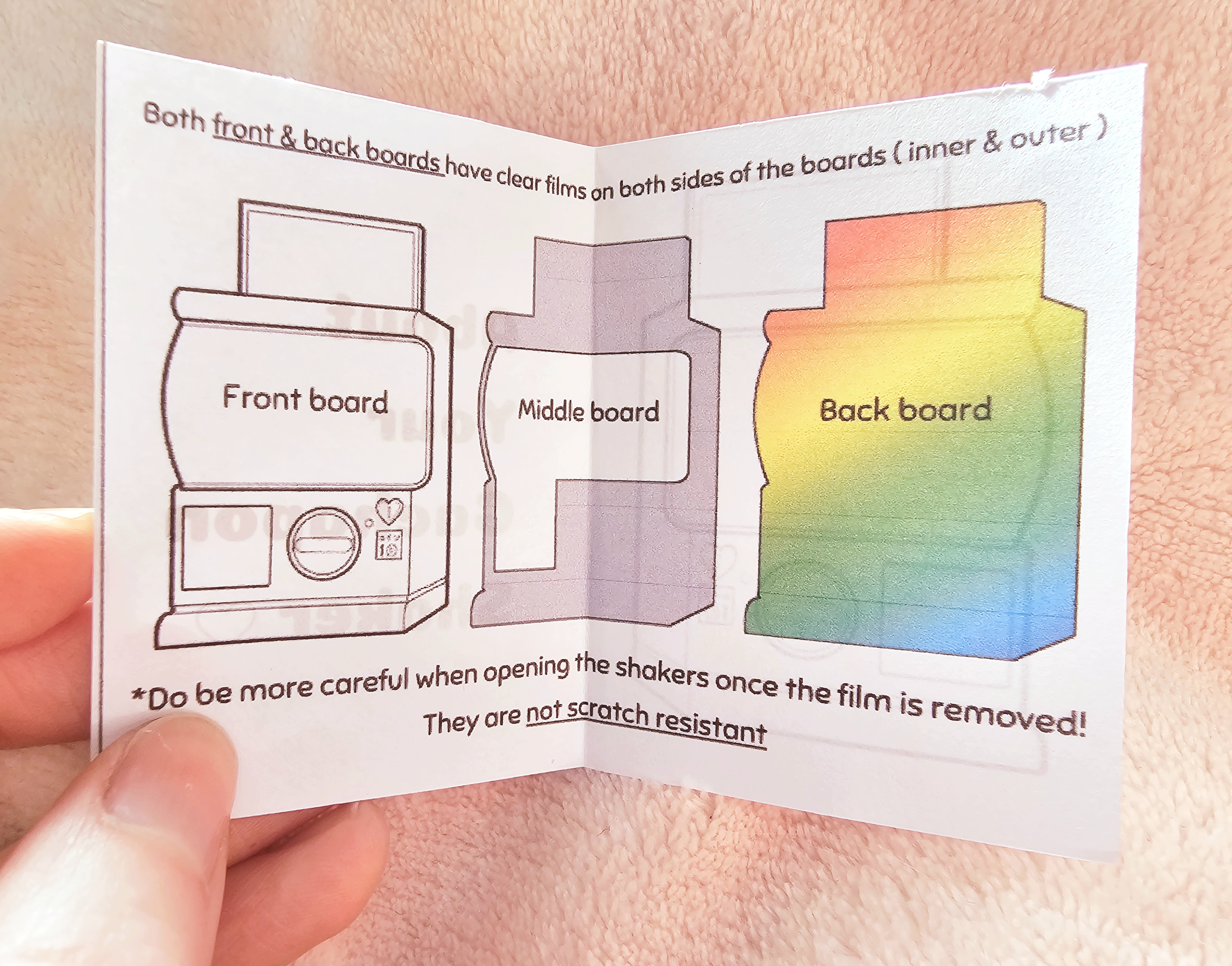 Speaking of the gachapon shakers, this latest release introduces a new design… now we can open them! They have multiple layers, which are held shut with magnets (which are actually very strong, I was a little worried mine wasn’t meant to open because it didn’t when I tried, until I gave it a bit more oomph XD), so you can open them up and access the little chibi heads inside. The gachapons already came with a protective film on the outside, but they also have it on the inside now! This film prevents scratches, but it can make it look a little cloudy. It’s perfect for keeping it safe while it’s being delivered, and during assembly, but I do prefer to peel it off once I have it set up. Plus, peeling it off is super satisfying… if you’re into that kind of thing, like me. >.>
