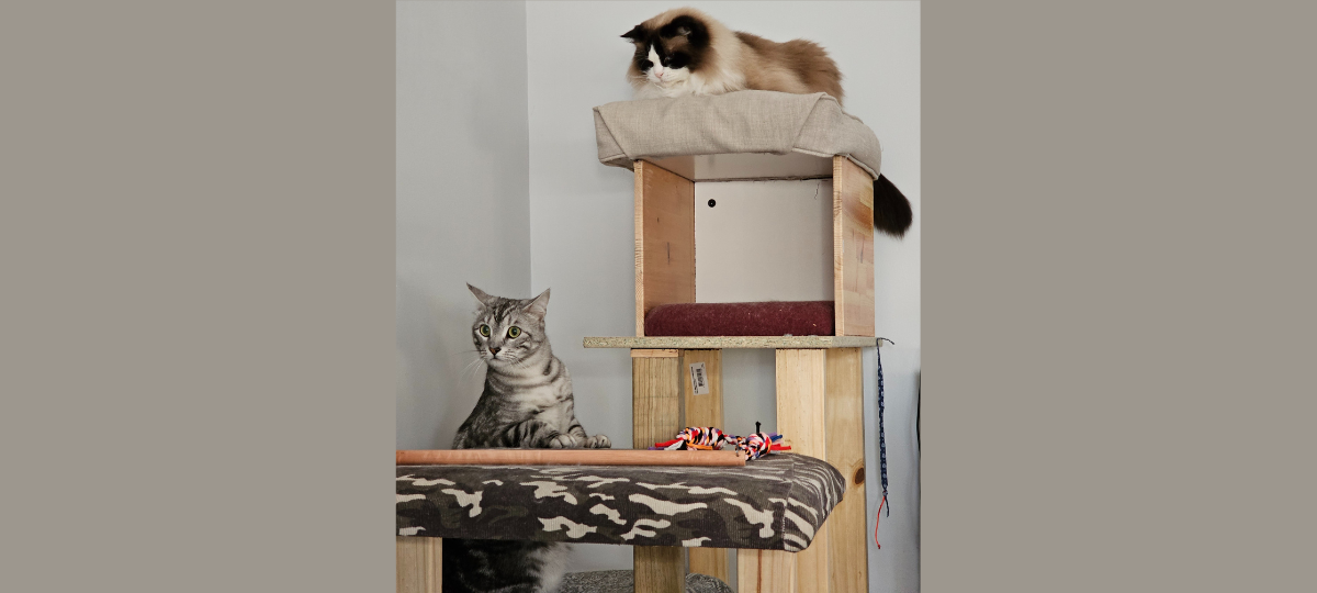 When Juno referred to her throne, of course, she meant the cat tree — handcrafted by one of her human subjects.
