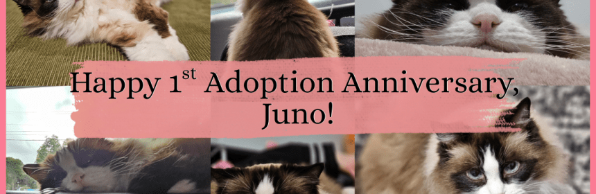 Happy 1st Adoption Anniversary, Juno! ♥ Here’s to many more years of cozy cuddles and cat caves…
